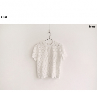 Áo kiểu YH135 : Áo chiffon dập hoa nổi cổ tròn đính đá